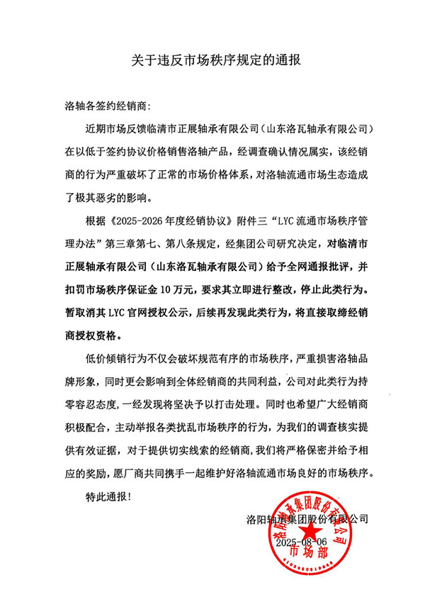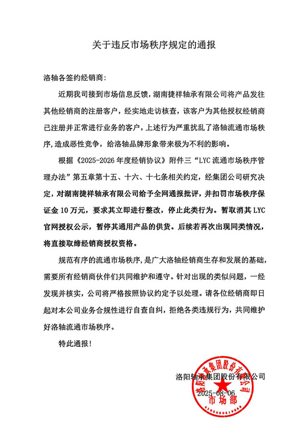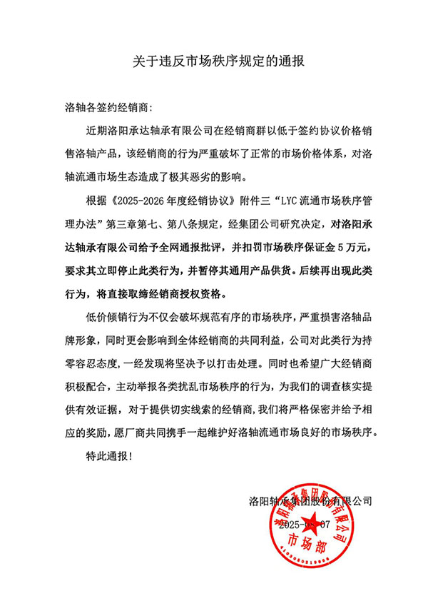 关于违反市场秩序规定的通报
