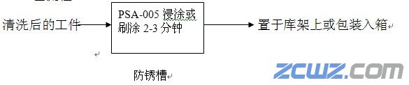 工序间防锈处理采用PSA-005防锈剂。该防锈剂是脱水置换型功能性防锈剂,具有良好的脱水性、人汗置换性和优良的防锈性能,可满足大部分金属材料、零件、元器件的短、中期工序间防锈要求;对材料安全性高;对环境无公害,对人体无毒副作用,属环保型产品。