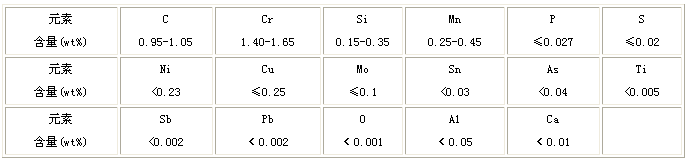高碳铬轴承钢是滚动轴承的最佳材料,它具备硬度高、抗滚动疲劳性强、耐磨性强、以及尺寸稳定性好等特性。其化学成分为: